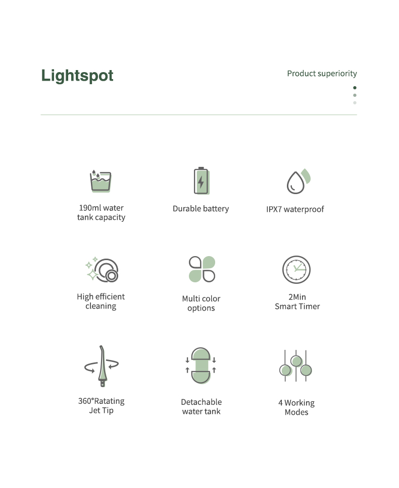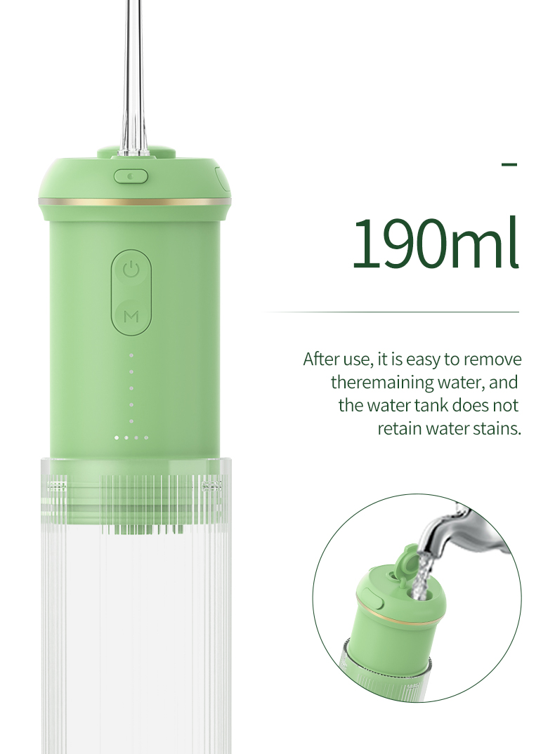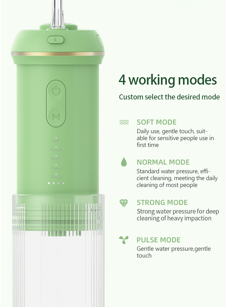 ღრმა წმენდა ძლიერი წნევით: წყლის ფლოსერი იყენებს პულსის უახლეს ტექნიკას, გთავაზობთ 4 რეჟიმს წნევის დიაპაზონით 30-90 Psi-მდე და პულსის სიხშირით 1400-1800 ჯერ/წუთში, რათა შესთავაზოს მაღალი ინტენსივობის წყალი, რომელიც ასუფთავებს 99,99%-ს. კბილების დაძაბვა, სპეციალურად შექმნილი პაროდონტიტის, ბრეკეტებისთვის.