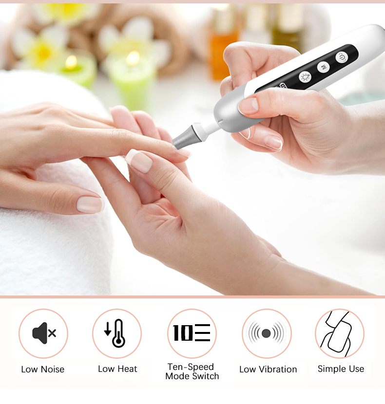 - სიჩქარის 10 პარამეტრი: გამოსცადეთ ჩვენი ელექტრო მანიკურის ნაკრების სიმძლავრე, რომელიც შეიცავს 10 პროგრესული სიჩქარის პარამეტრს და მრავალმხრივ ბრუნვას საათის ისრის მიმართულებით და საათის ისრის საწინააღმდეგოდ. ფრჩხილის საბურღი ეფილი გარანტიას იძლევა ზუსტი შეფუთვის სქელ ფრჩხილებზე და ფეხის ფრჩხილებზე და მორგებულია ყველა ტიპის კანისთვის, მათ შორის დიაბეტით დაავადებულთათვის
