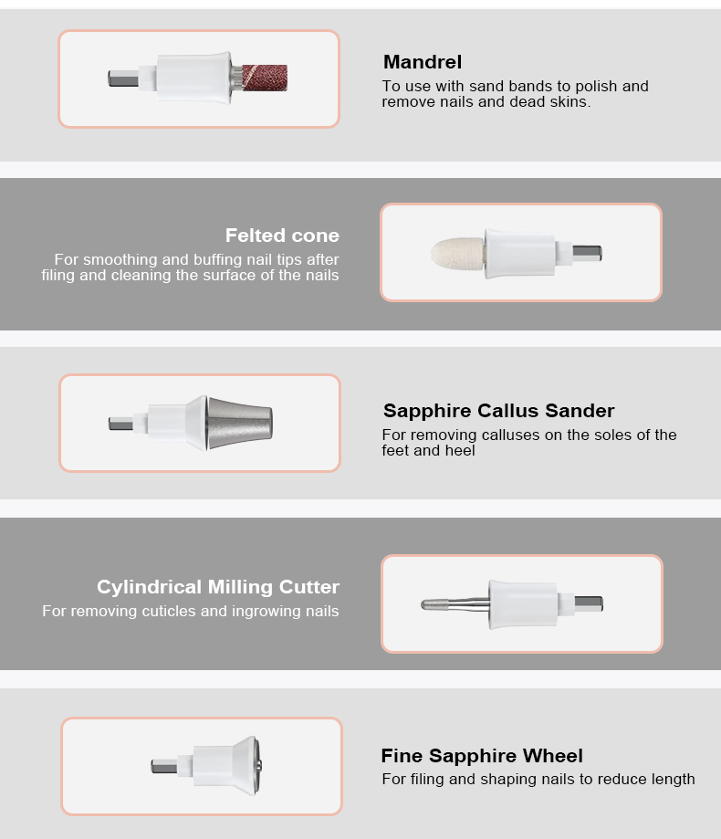 - უკაბელო და დამუხტვადი: უსადენო ელექტრო ფრჩხილის საბურღი შესანიშნავია მოგზაურობისთვის და გთავაზობთ შთამბეჭდავ 10 საათს მუშაობის დროს. მოსახერხებელი პედიკურის ხელსაწყო ფეხებისთვის და ყველა თქვენი მანი პედის საჭიროებისთვის. ჩვენი ფრჩხილის ფაილი შესაფერისია ბუნებრივი, აკრილის, გელის და დიპლომატიური ფრჩხილებისთვის