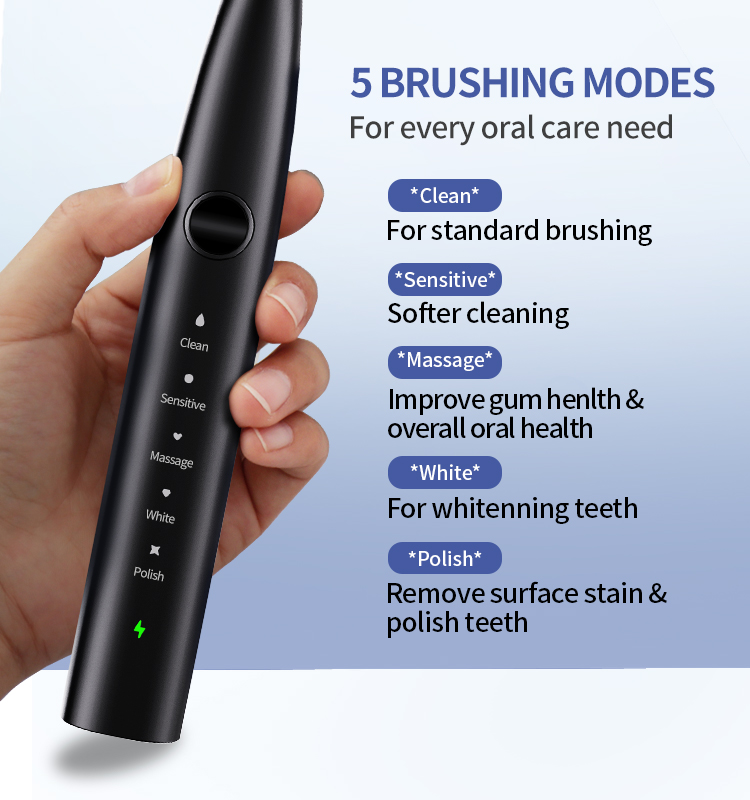 - 5 მაღალი ხარისხის დავარცხნის რეჟიმი - სუფთა (ნაზი), თეთრი (ძლიერი), პოლონური (ძლიერი ინვერტული სიხშირე), უფრო მსუბუქი (რბილი ინვერტული სიხშირე) და მგრძნობიარე (რბილი) ღრძილების კბილების სხვადასხვა პირობებზე, ასე რომ თქვენ შეგიძლიათ აირჩიოთ სხვადასხვა რეჟიმი თქვენი პრეფერენციებისა და სტომატოლოგის რეკომენდაციების მიხედვით.