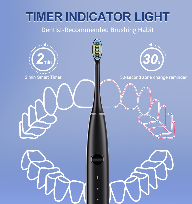 - SMART ვიბრაციული შეტყობინებების ტაიმერი - ჩაშენებული ჭკვიანი ტაიმერის კონტროლი, 30 წამის ინტერვალით, რომელიც შეგახსენებთ, რომ გადახვიდეთ პირის ღრუს შემდეგ ოთხკუთხედზე და მთლიანად 2 წუთში (4 კვადრატში), რაც მკაცრად რეკომენდებულია პროფესიონალი სტომატოლოგების მიერ, როგორც სწორი დავარცხნა.